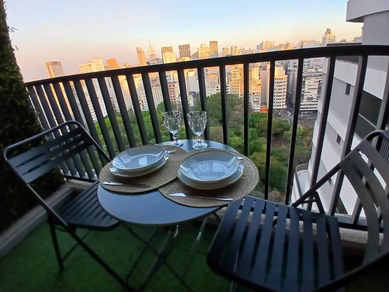 Estúdio sofisticado, novíssimo e aconchegante, com vista exclusiva para a Praça da República. Acomoda até 4 pessoas com conforto, Wi-Fi rápido, ar-condicionado e cozinha equipada.